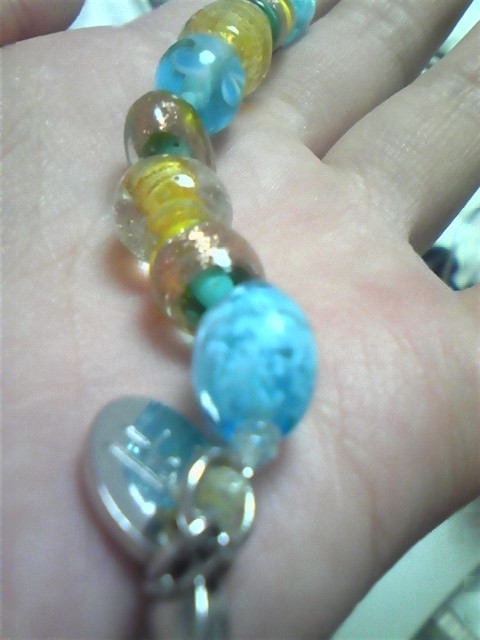 手前から二番目のビーズ、上下逆だったんです。固定してから気付いた。
