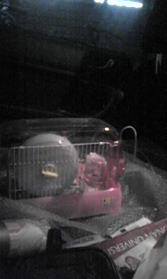 運転席で遊ぶハムスター。