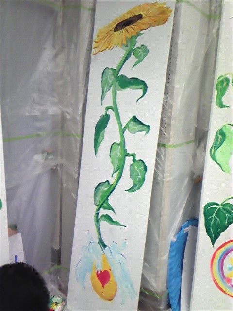 まあ壁画というか壁画の一部で、画像の通り縦に長いボードにアクリルで描きました。