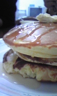お昼には、前日買っておいたホットケーキを焼いて、